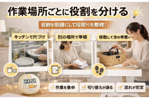 作業場所ごとに役割を決めることで、段取りは整理しやすくなります。