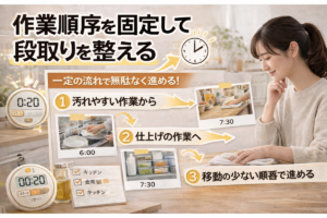 作業順序をあらかじめ決めておくことで、判断の回数を減らし、一定の流れで家事を進めやすくなります。